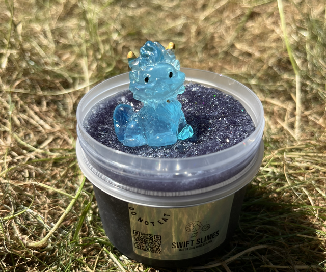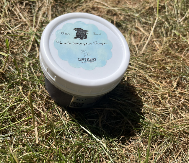 Fly high with How To Train Your Dragon, a new clear slime in a black colour with silver glitter and grey beads.