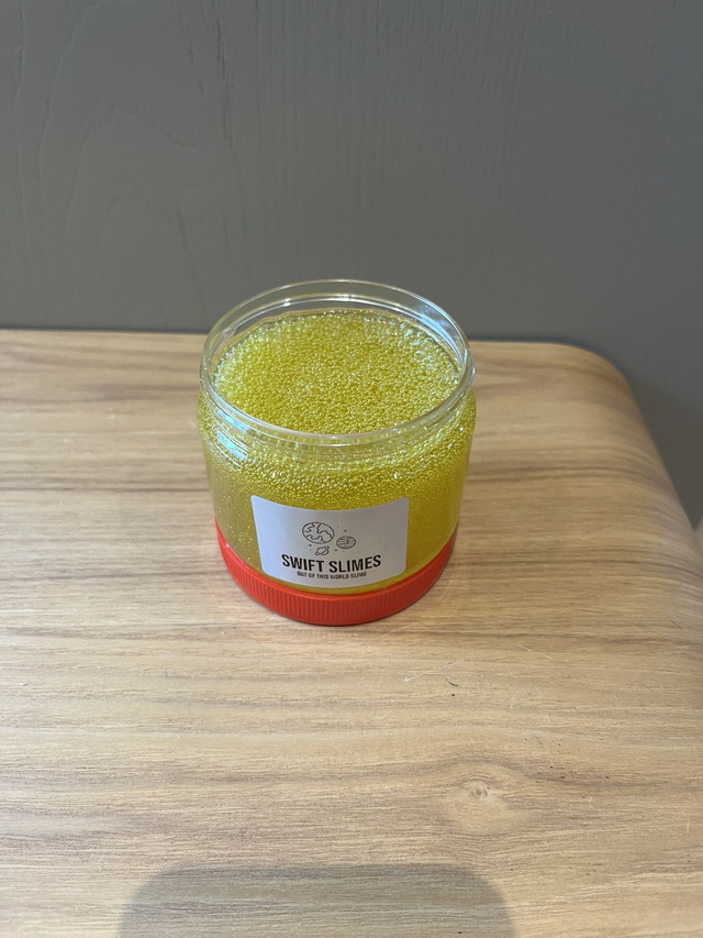 This is our 200ml pineapple punch slime with a golden colour and glitter elements! This unique and mesmerising slime is perfect for sensory play, stress relief, and imaginative exploration. With a delicious fruity scent, the slime will be a delight to your senses and relaxation to your mind. The combination of glitter and golden colour adds an extra spark to this already fascinating product. It's perfect for gifting, kids’ parties, or to enhance your slime collection. Get your hands on our Fruity Scented Slime now and experience the ultimate sensory satisfaction!